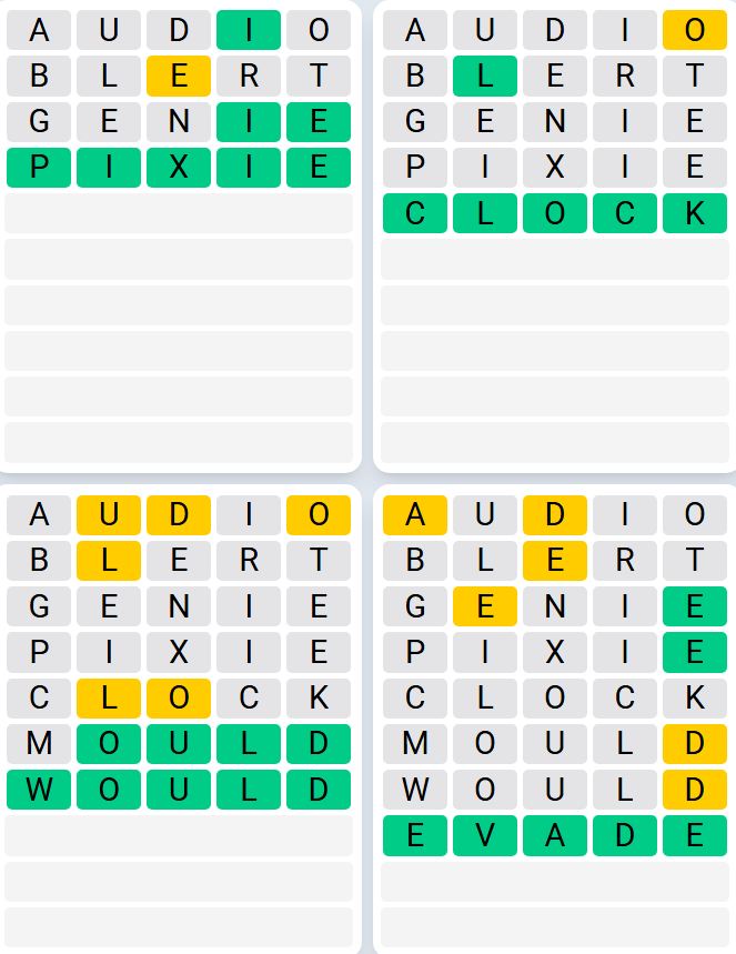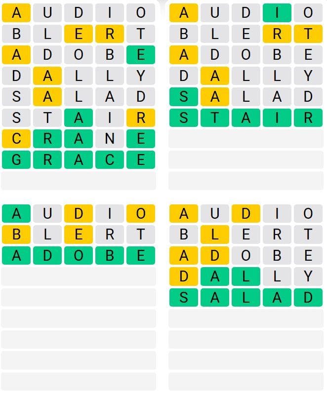It is the most popular daily word game outside of Wordle due to the increased level of difficulty. Players must guess four five-letter words in as few as nine attempts, rather than guessing one word.