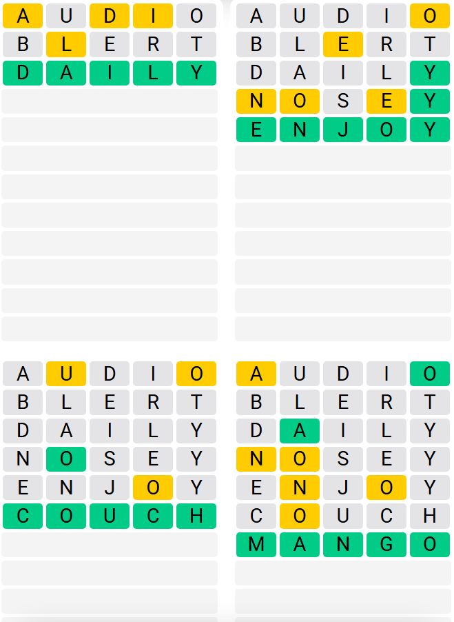 It is the most popular daily word game outside of Wordle due to the increased level of difficulty. Players must guess four five-letter words in as few as nine attempts, rather than guessing one word.