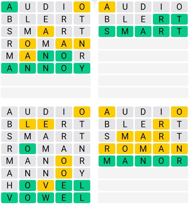 It is the most popular daily word game outside of Wordle due to the increased level of difficulty. Players must guess four five-letter words in as few as nine attempts, rather than guessing one word.