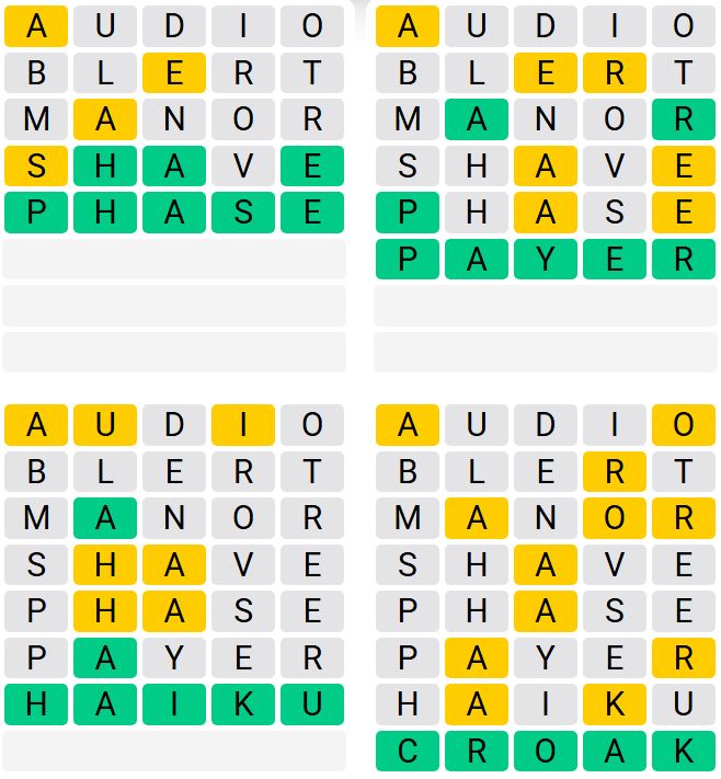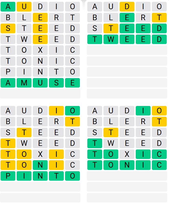 It is the most popular daily word game outside of Wordle due to the increased level of difficulty. Players must guess four five-letter words in as few as nine attempts, rather than guessing one word.