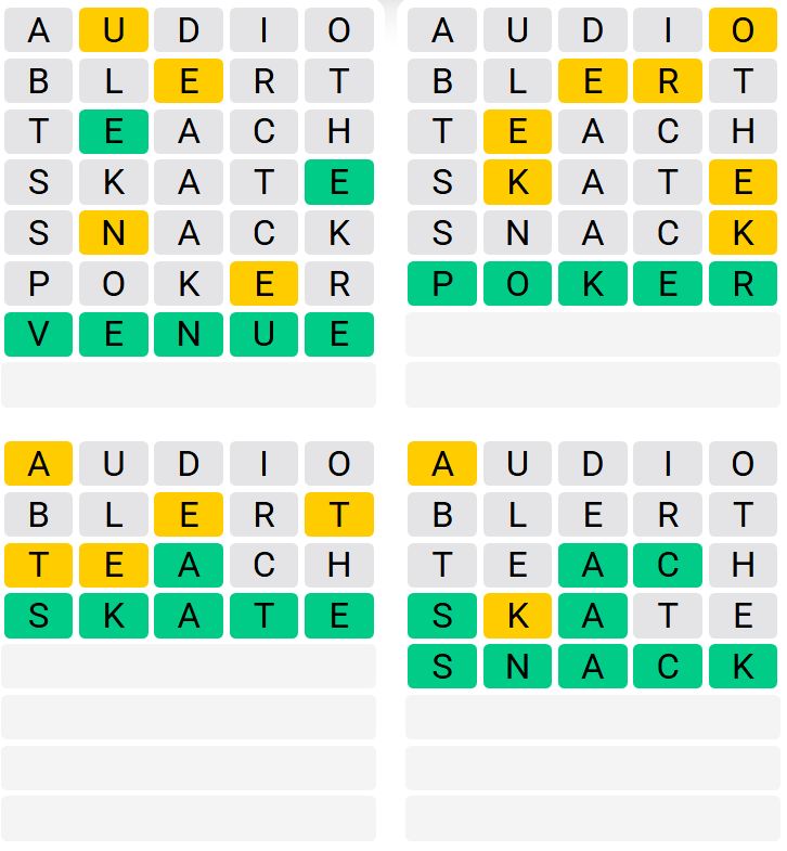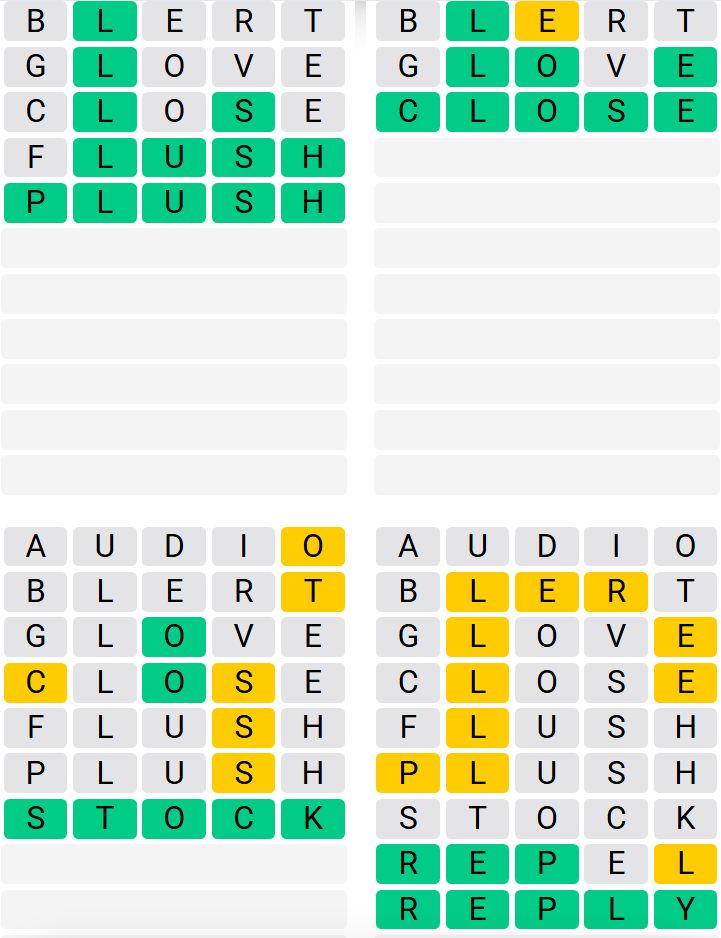 It is the most popular daily word game outside of Wordle due to the increased level of difficulty. Players must guess four five-letter words in as few as nine attempts, rather than guessing one word.