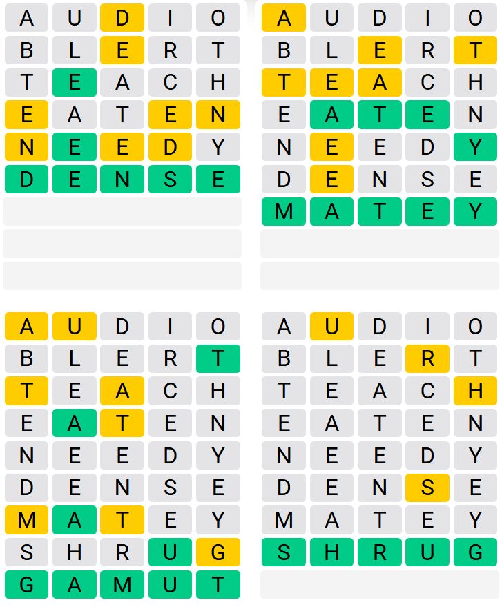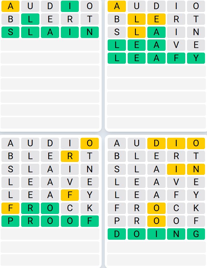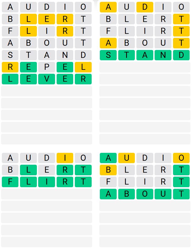 It is the most popular daily word game outside of Wordle due to the increased level of difficulty. Players must guess four five-letter words in as few as nine attempts, rather than guessing one word.