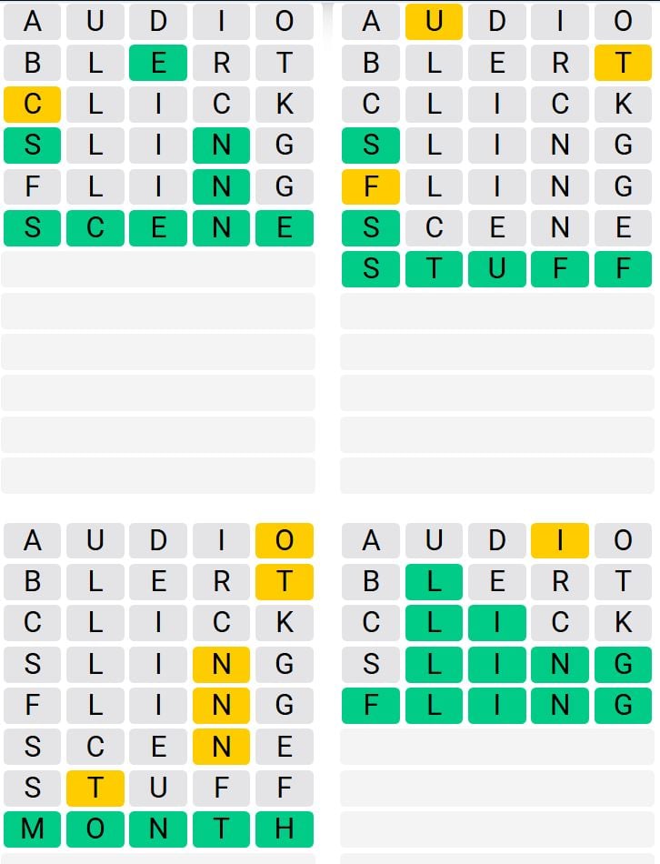 It is the most popular daily word game outside of Wordle due to the increased level of difficulty. Players must guess four five-letter words in as few as nine attempts, rather than guessing one word.