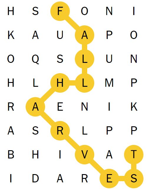 The word starts at the top, hits the bottom and ends on the right. The exact location of the Spangram word on the grid can be seen below: