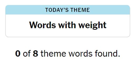 Today’s theme or hint for the puzzle is, “WORDS WITH WEIGHT” and there are eight theme words to be found.