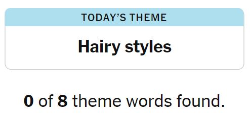 Today’s theme or hint for the puzzle is, “HAIRY STYLES” and there are eight theme words to be found.