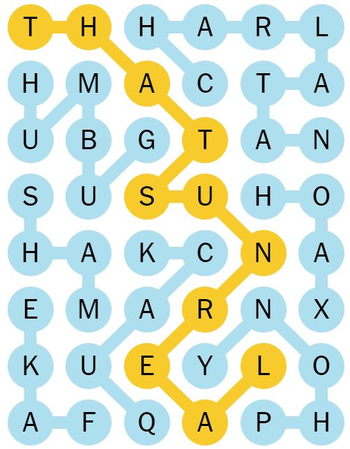 The word starts in the top left corner, hits the bottom and ends just above on the right side. The exact location of the Spangram word on the grid can be seen below: