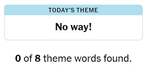 Today’s theme or hint for the puzzle is, “NO WAY!” and there are eight theme words to be found.