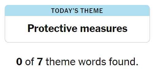 Today’s theme or hint for the puzzle is, “PROTECTIVE MEASURES” and there are seven theme words to be found.