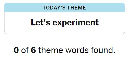 Today’s theme or hint for the puzzle is, “LET’S EXPERIMENT” and there are six theme words to be found.