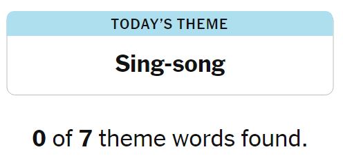 Today’s theme or hint for the puzzle is, “SING-SONG” and there are seven theme words to be found.