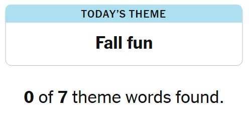 Today’s theme or hint for the puzzle is, “FALL FUN” and there are seven theme words to be found.