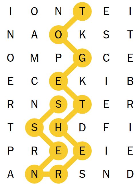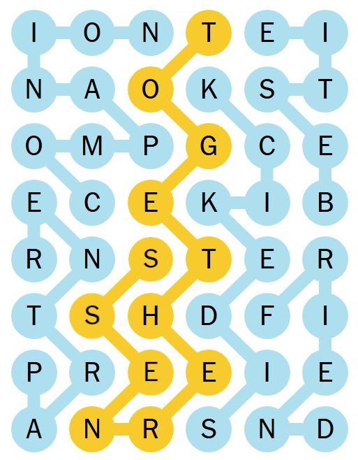 There is also a “spangram” which is a word on the board that describes the theme of the puzzle for the day. It will touch two opposite sides of the board and may be two words.