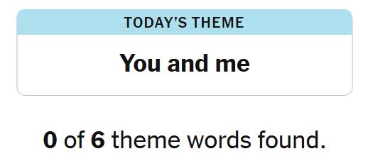 Today’s theme or hint for the puzzle is, “YOU AND ME” and there are six theme words to be found.