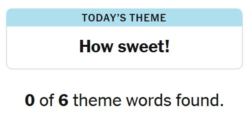 Today’s theme or hint for the puzzle is, “HOW SWEET!” and there are six theme words to be found.