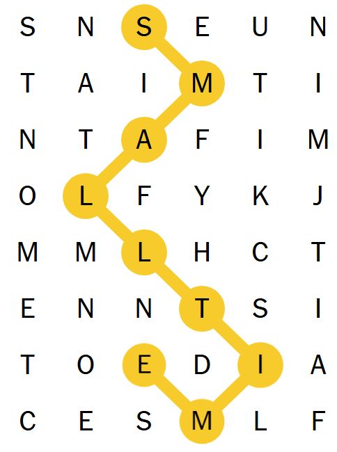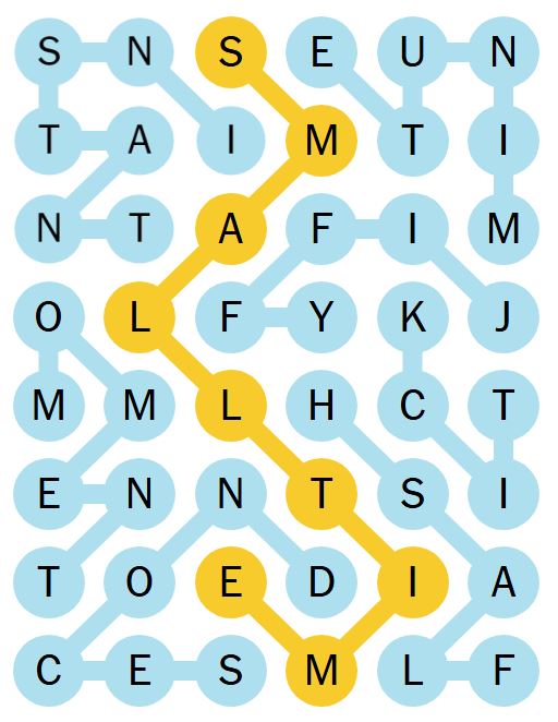 There is also a “spangram” which is a word on the board that describes the theme of the puzzle for the day. It will touch two opposite sides of the board and may be two words.