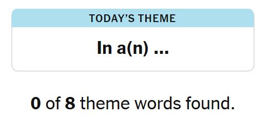 Today’s theme or hint for the puzzle is, “IN A(N)…” and there are eight theme words to be found.