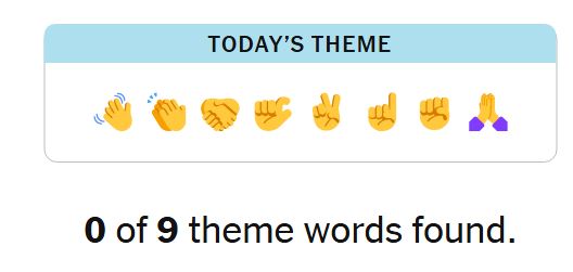 Today’s theme or hint for the puzzle is, “✌☝✊” and there are nine theme words to be found.