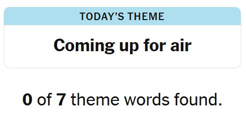 Today’s theme or hint for the puzzle is, “COMING UP FOR AIR” and there are seven theme words to be found.