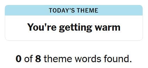 Today’s theme or hint for the puzzle is, “YOU’RE GETTING WARM” and there are eight theme words to be found.