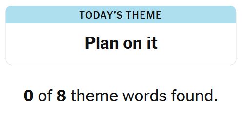 Today’s theme or hint for the puzzle is, “PLAN ON IT” and there are eight theme words to be found.