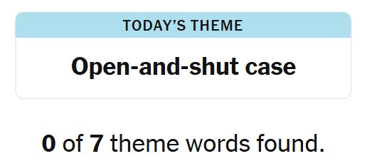 Today’s theme or hint for the puzzle is, “OPEN-AND-SHUT CASE” and there are seven theme words to be found.