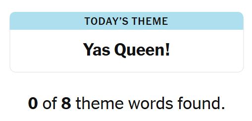 Today’s theme or hint for the puzzle is, “YAS QUEEN!” and there are eight theme words to be found.