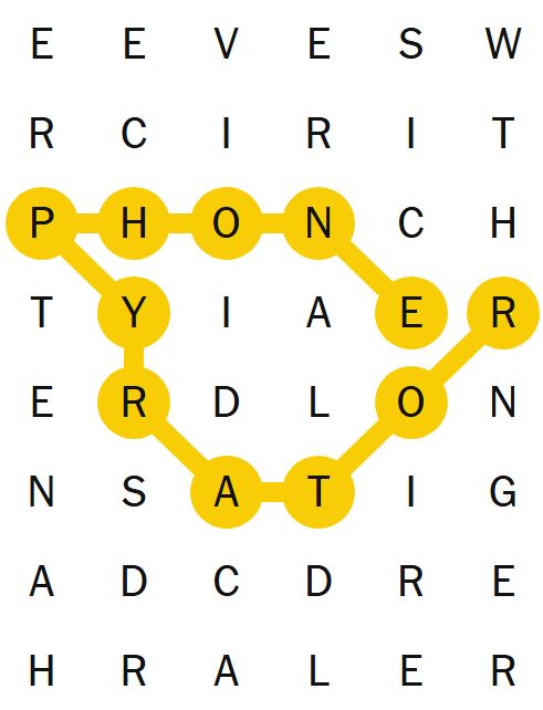 There is also a “spangram” which is a word on the board that describes the theme of the puzzle for the day. It will touch two opposite sides of the board and may be two words.