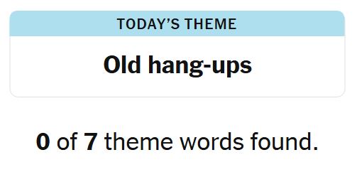 Today’s theme or hint for the puzzle is, “OLD HANG-UPS!” and there are seven theme words to be found.
