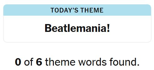 Today’s theme or hint for the puzzle is, “BEATLEMANIA!” and there are six theme words to be found.