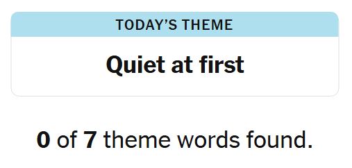 Today’s theme or hint for the puzzle is, “QUIET AT FIRST” and there are seven theme words to be found.
