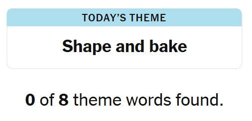 Today’s theme or hint for the puzzle is, “SHAPE AND BAKE” and there are eight theme words to be found.