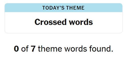 Today’s theme or hint for the puzzle is, “CROSSED WORDS” and there are seven theme words to be found.