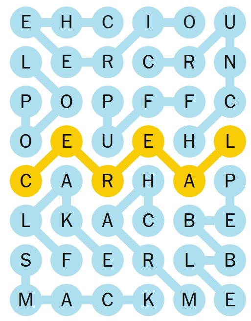 There is also a “spangram” which is a word on the board that describes the theme of the puzzle for the day. It will touch two opposite sides of the board and may be two words.
