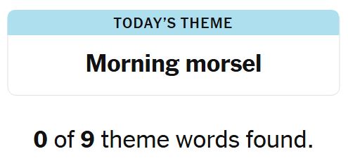 Today’s theme or hint for the puzzle is, “MORNING MORSEL” and there are nine theme words to be found.