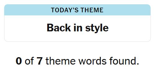 Today’s theme or hint for the puzzle is, “BACK IN STYLE” and there are seven theme words to be found.