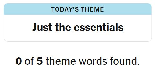 Today’s theme or hint for the puzzle is, “JUST IN ESSENTIALS” and there are five theme words to be found.