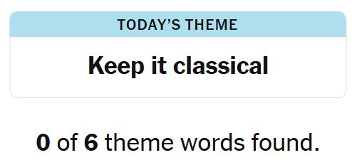 Today’s theme or hint for the puzzle is, “KEEP IT CLASSICAL” and there are six theme words to be found.
