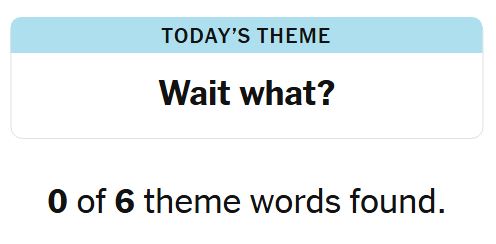 Today’s theme or hint for the puzzle is, “WAIT WHAT?” and there are six theme words to be found.