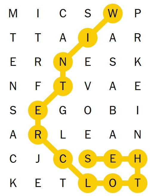 There is also a “spangram” which is a word on the board that describes the theme of the puzzle for the day. It will touch two opposite sides of the board and may be two words.