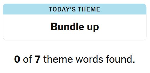 Today’s theme or hint for the puzzle is, “BUNDLE UP” and there are seven theme words to be found.