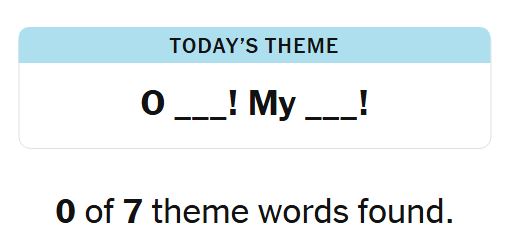 Today’s theme or hint for the puzzle is, “O ___! My ___!” and there are seven theme words to be found.