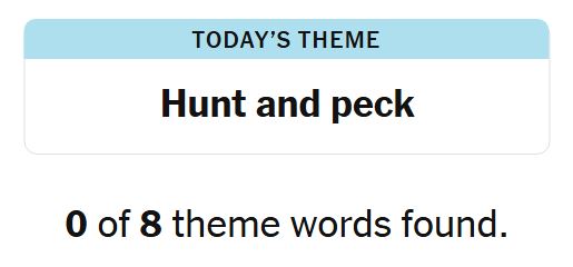Today’s theme or hint for the puzzle is, “HUNT AND PECK” and there are eight theme words to be found.