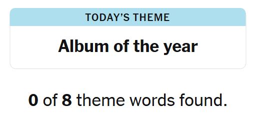 Today’s theme or hint for the puzzle is, “ALBUM OF THE YEAR” and there are eight theme words to be found.