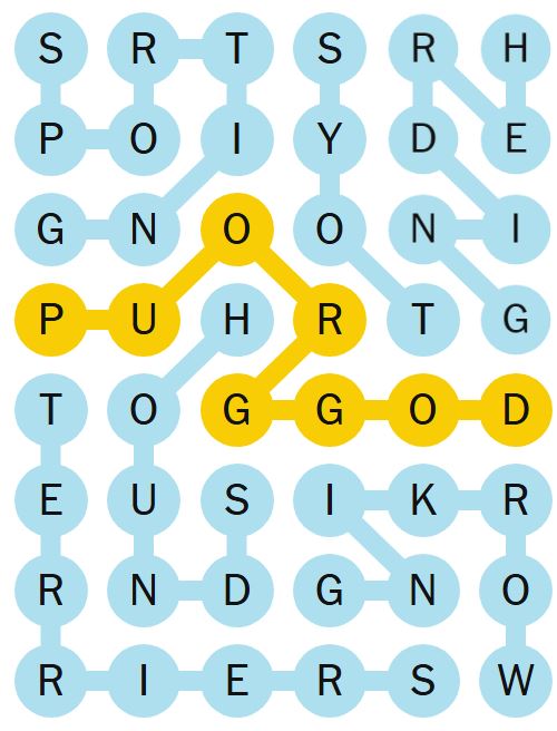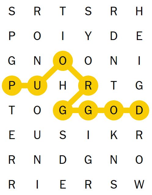 There is also a “spangram” which is a word on the board that describes the theme of the puzzle for the day. It will touch two opposite sides of the board and may be two words.