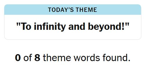 Today’s theme or hint for the puzzle is, “TO INFINITY AND BEYOND!” and there are eight theme words to be found.