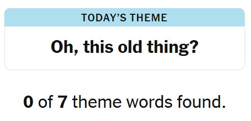 Today’s theme or hint for the puzzle is, “OH, THIS OLD THING?” and there are seven theme words to be found.