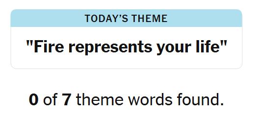 Today’s theme or hint for the puzzle is, “FIRE REPRESENTS YOUR LIFE” and there are seven theme words to be found.