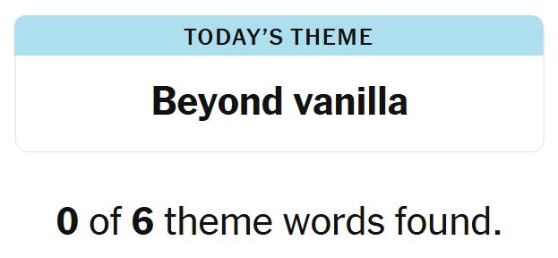 Today’s theme or hint for the puzzle is, “BEYOND VANILLA” and there are six theme words to be found.
