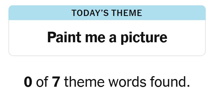 Today’s theme or hint for the puzzle is, “PAINT ME A PICTURE” and there are seven theme words to be found.